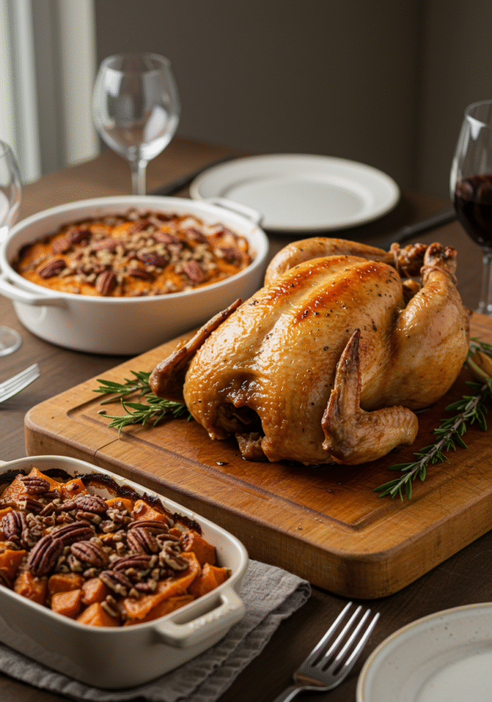 16. Herb-Roasted Chicken with Sweet Potato Casserole