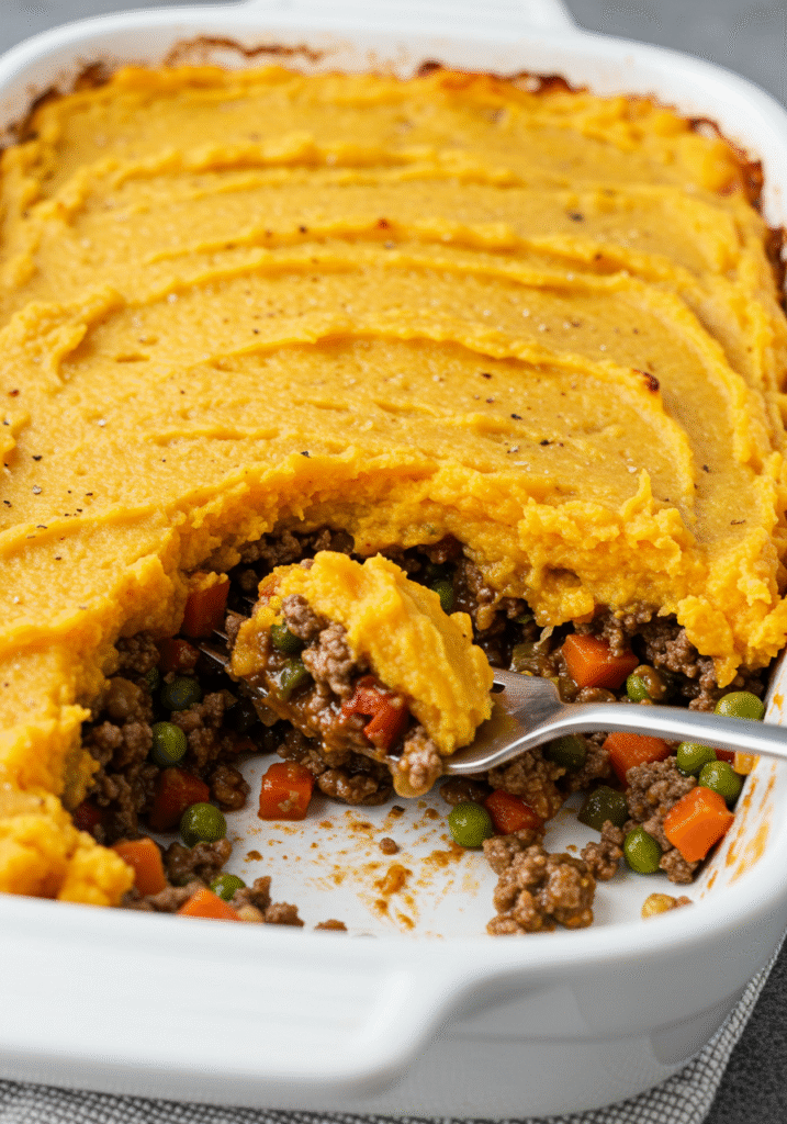 A comforting classic reimagined with creamy, savory mashed sweet potatoes instead of regular potatoes. Rich gravy and perfectly seasoned beef make this a crowd-pleaser.